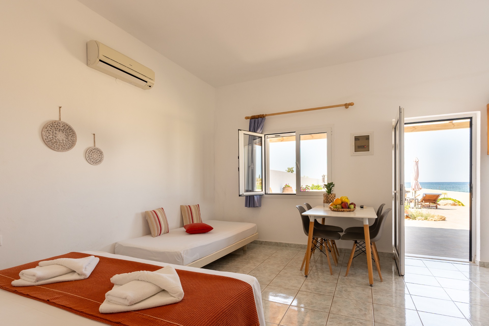 Discover Sandy Steps Beachfront Apartments, a delightful seaside hideaway perched right at the water’s edge in Malia. With its private‑beach zone and sea‑view terraces, guests step from their accommodations directly onto sand and waves. Each apartment is thoughtfully equipped with air‑conditioning, a well‑fitted kitchenette, private bathroom, free WiFi and private parking — perfect for small families or couples seeking a self‑catered holiday by the sea. Located at Pyrgou 3 in Malia and just a short stroll from Central Malia Beach, this welcoming property combines comfort, convenience, and a prime beachfront setting for a truly relaxed island escape.